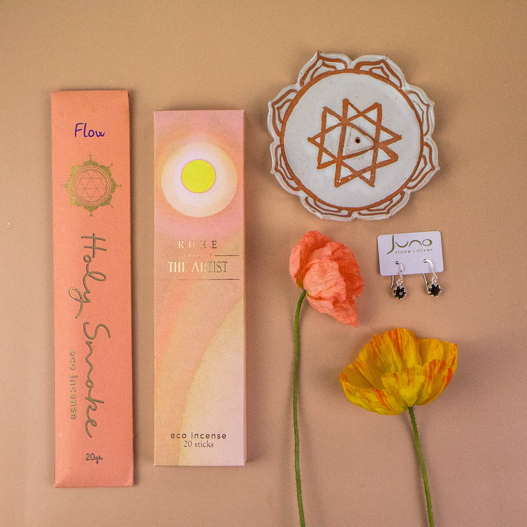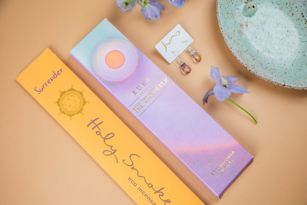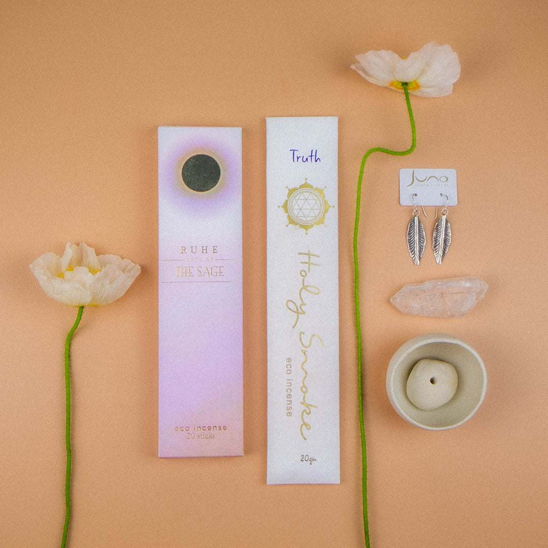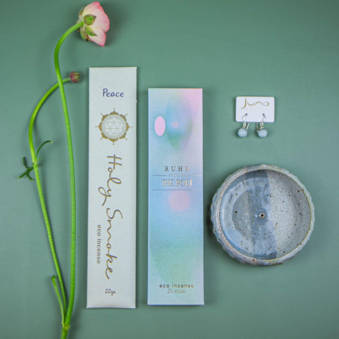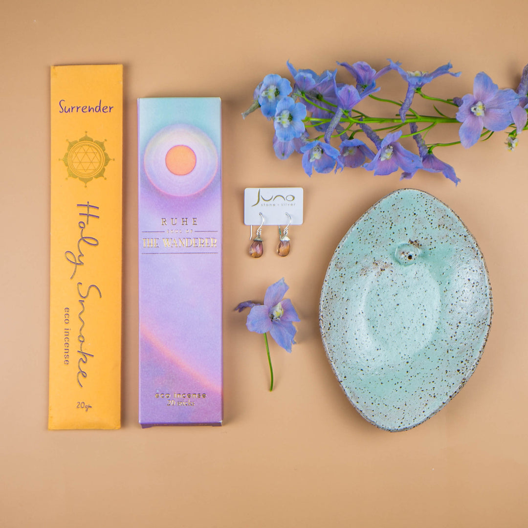 Ensembles is an offering which combines some of our fav elements which share an affinity, bringing together incense from the plant realm, jewels from the mineral realm and incense holders hand crafted from earth.