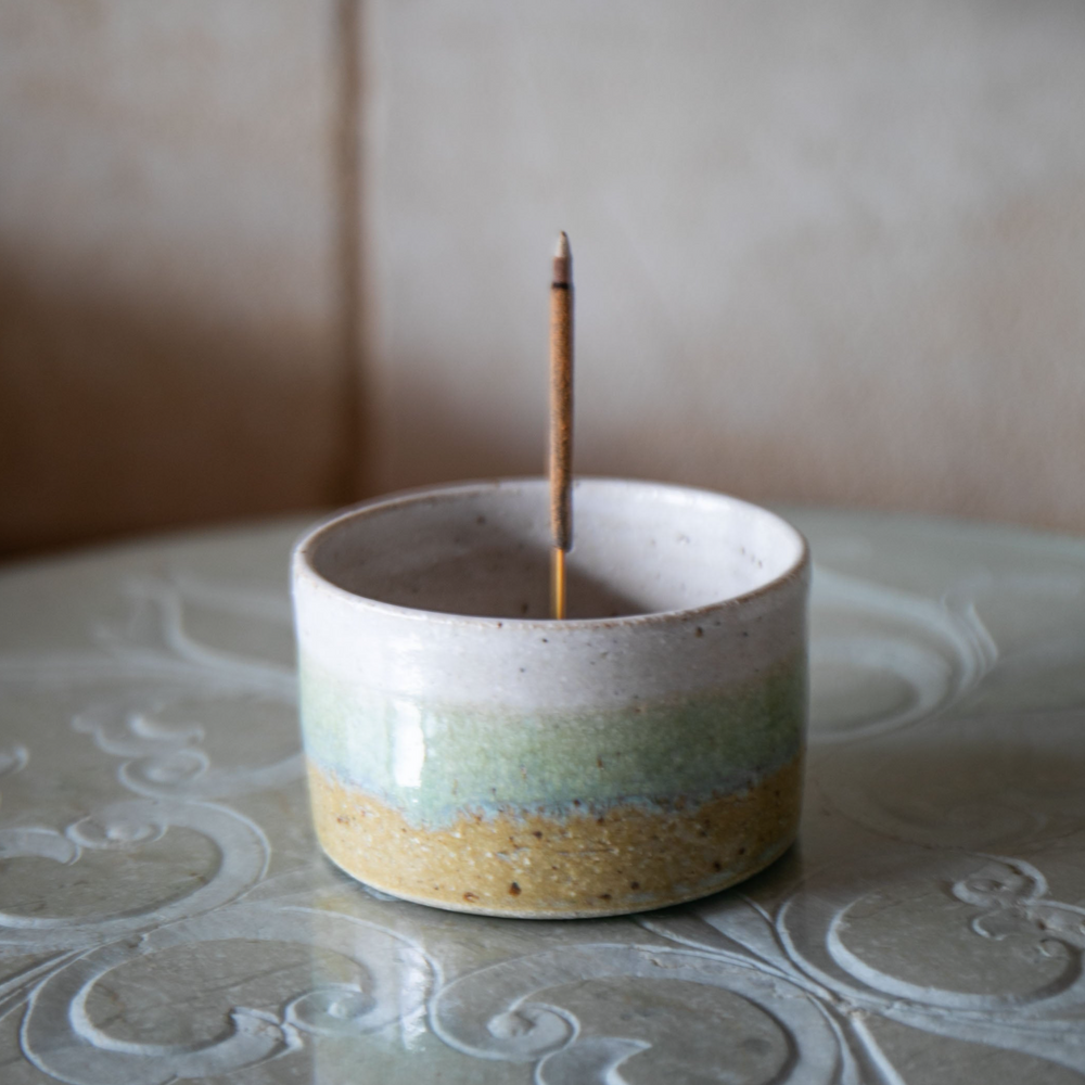 Lovely Ombre Glazed Cup Style Ceramic Incense Holder, handmade in Australia.